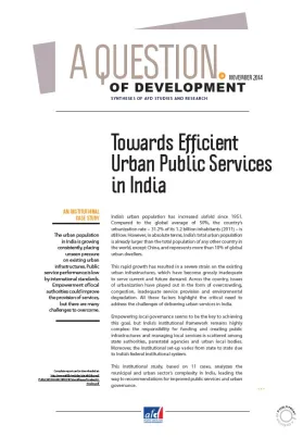 The urban population in India is growing consistently, placing unseen pressure on existing urban infrastructures. Public service performance is low by international standards. Empowerment of local aut...