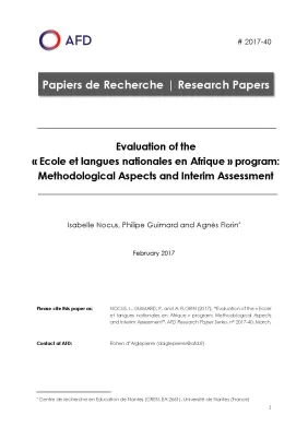 Evaluation of the « Ecole et langues nationales en Afrique » program: Methodological Aspects and Interim Asses...