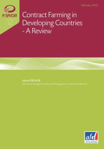 Contract farming can be defined as a firm providing farmers with particular “input” — such as seed, fertilizer, credit, extension — in exchange for exclusive purchasing rights over a specified crop. This form of vertical integration within agricultural commodity chains has attracted considerable academic and policy attention. This review tries, through the analysis of academic, institutional and technical literature and through the study of some documented contract farming cases, to give some answers to the most frequently raised questions concerning contract farming practices: Are smallholders excluded from contract farming? Do contract participants display significantly higher incomes than nonparticipants? Are some crops more concerned by this practice than others and if so, which ones? What firms usually enter into contract farming arrangements? Are some markets more targeted by contract-farming initiatives than others, and, according to the value chain, are there different practices? What are the roles of producer organisations and NGOs?