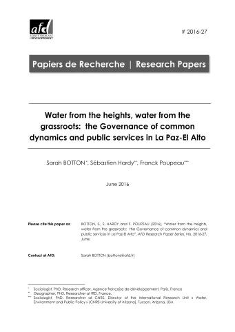 Water from the heights, water from the grassroots: the Governance of common dynamics and public services in La Paz-El Alto