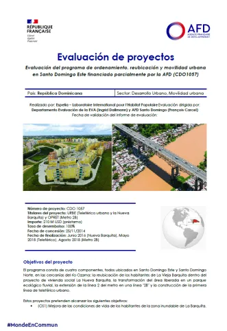 Evaluación del programa de ordenamiento, reubicación y movilidad urbana en Santo Domingo Este financiado parcialmente por la AFD (CDO1057)