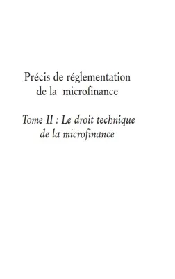 Précis de réglementation de la microfinance - Tome II : Le droit technique de la microfinance