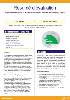 Lancé en 2010, le 3PRD (CSN1250) avait pour objectif de développer la production rizicole dans le delta du fleuve Sénégal en testant un modèle de partenariat « public-privé » (contribution financière...