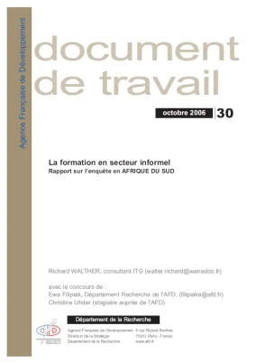 Ce rapport s‘inscrit dans le cadre d‘une étude réalisée par le département de la Recherche de l’AFD sur la formation en secteur informel dans sept pays d‘Afrique. Il s‘agit, par ordre alphabétique, de...