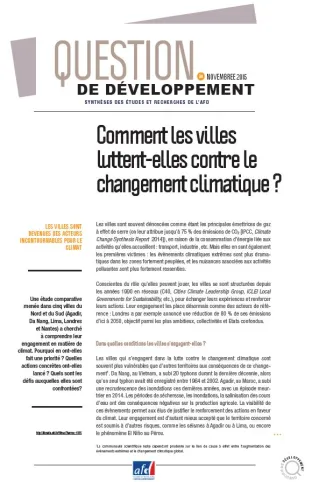 Une étude comparative menée dans cinq villes du Nord et du Sud (Agadir, Da Nang, Lima, Londres et Nantes) a cherché à comprendre leur engagement en matière de climat. Pourquoi en ont-elles fait une priorité ? Quelles actions concrètes ont-elles lancé ? Quels sont les défis auxquelles elles sont confrontées?