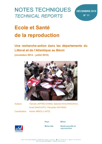 Ecole et Santé de la reproduction - Une recherche-action dans les départements du Littoral et de l’Atlantique au Bénin (novembre 2014 - juillet 2015)