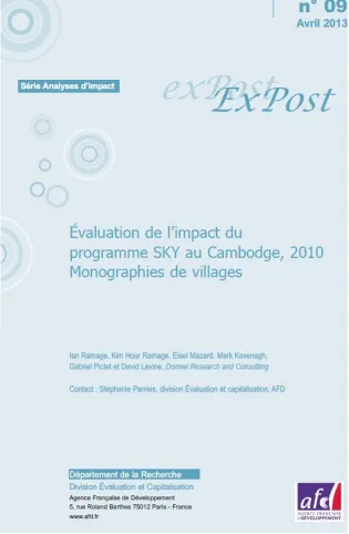 L’université de Berkeley et l’équipe de recherche cambodgienne Domrei, évaluent le projet afin de mesurer ses impacts sur la santé des plus pauvres des zones rurales, et de comprendre pourquoi les ménages décident - ou pas - de souscrire à cette assurance. Les monographies villageoises synthétisées dans ce rapport fournissent une analyse qualitative détaillée des dynamiques de l’adhésion à SKY et des effets qu’elle a et sur ses membres (et les non-membres).