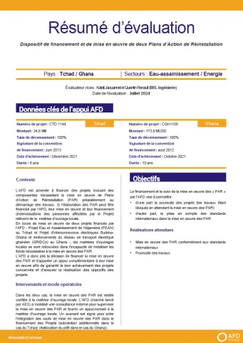 Evaluation du Dispositif de financement et de mise en œuvre de deux Plans d’Action de Réinstallation (PAR), Tchad et Ghana (CTD1144 ; CGH1109)