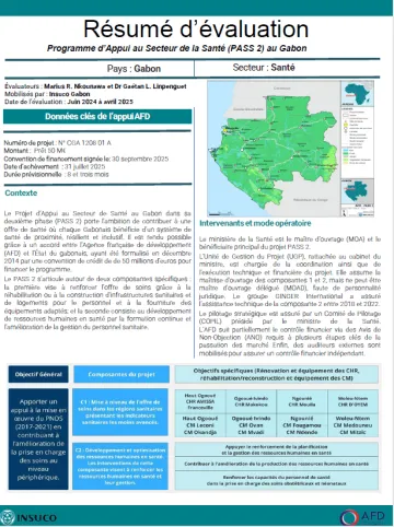 Evaluation en fin de parcours du financement du Programme d'Appui au Secteur de la Santé (PASS 2) au Gabon (CGA1208)