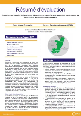 Evaluation par les pairs du Programme d’Extension en zones Périphériques et de renforcement du Service d’eau potable à Brazzaville (PEPS), République du Congo (CCG1127)