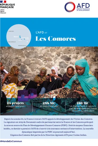 Depuis les années 60, la France à travers l’AFD appuie le développement de l’Union des Comores. La signature en 2019 du Document-cadre de partenariat entre la France et les Comores prévoyait la mise en oeuvre du Plan de Développement France-Comores (PDFC). Doté de moyens financiers inédits, ce dernier a permis à l’AFD de s’ouvrir à de nouveaux secteurs d’intervention. La nouvelle dynamique impulsée par le PDFC se poursuit aujourd’hui. L’Agence des Comores fait partie de la Direction régionale AFD pour l’océan Indien.