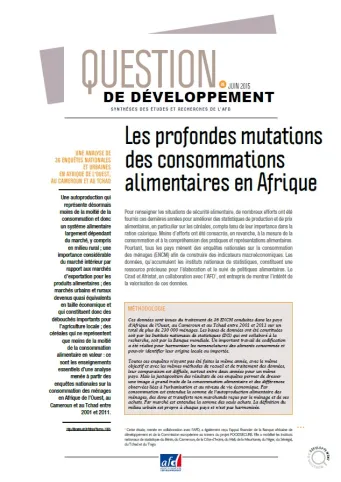 Une autoproduction qui représente désormais moins de la moitié de la consommation et donc un système alimentaire largement dépendant du marché, y compris en milieu rural ; une importance considérable du marché intérieur par rapport aux marchés d’exportation pour les produits alimentaires ; des marchés urbains et ruraux devenus quasi équivalents en taille économique et qui constituent donc des débouchés importants pour l’agriculture locale ; des céréales qui ne représentent que moins de la moitié de la consommation alimentaire en valeur : ce sont les enseignements essentiels d’une analyse menée à partir des enquêtes nationales sur la consommation des ménages en Afrique de l’Ouest, au Cameroun et au Tchad entre 2001 et 2011.
